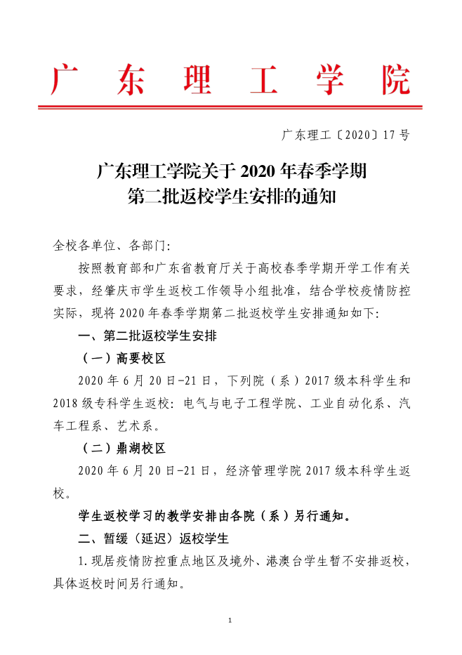 关于2020年春季学期第二批返校员工安排的通知