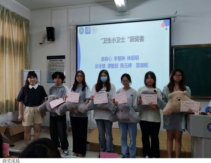 第四项,段思思、高凡老师为获得“卫生先进个人”的同学进行颁奖。