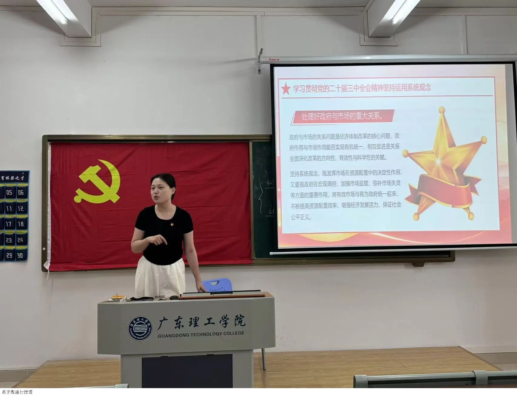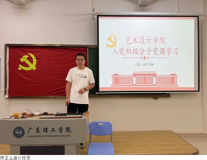 公司党总书记赵宁进行对中国共产党的性质、宗旨、指导思想、奋斗目标、组织原则和优良作风教学楼讲解。