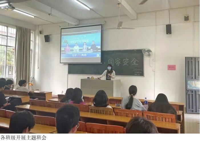 今年是第七个全民国家安全教育日,主题是“树牢总体国家安全观,感悟新时代国家安全成就,为迎接党的二十大胜利召开营造良好氛围”。在活动期间,我系组织员工进行了系列的学习活动,主要以全体辅导员、系部各员工部门、班级、员工宿舍为单位进行。其中,活动形式多样,有全体辅导员集体观看视频、各班级的主题班会、组织员工在宿舍线上观看视频、观后感交流会、利用腾讯会议进行线上会议等。