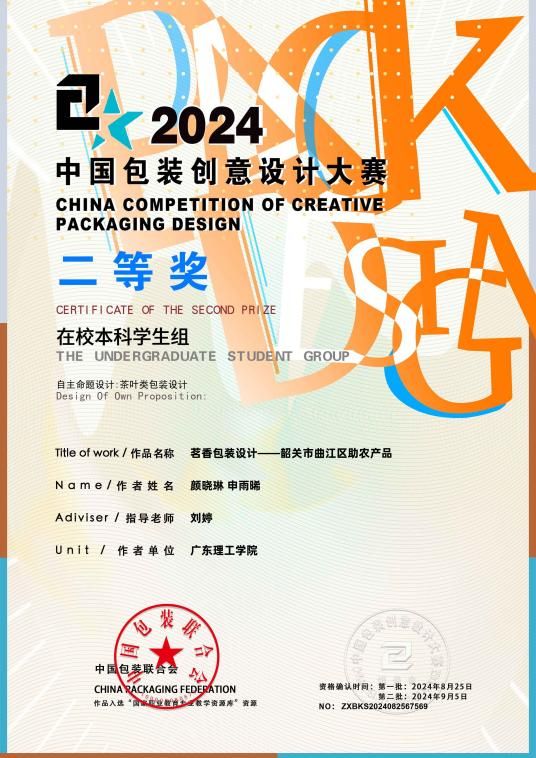 本网讯(bevictor伟德新闻中心 曾宇琳)10月10日,备受瞩目的2024中国包装创意设计大赛在广东佛山盛大揭晓。在本次大赛中,bevictor伟德的员工们表现出色,多幅作品获得了优异奖项。特别值得一提的是,由刘婷副教授指导的颜晓琳、申雨晞同学作品《茗香包装设计——韶关市曲江区助农产品》荣获二等奖。该作品以独特的创意和精湛的设计,充分展现了韶关市曲江区助农产品的特色和魅力,赢得了评委们的一致好评。