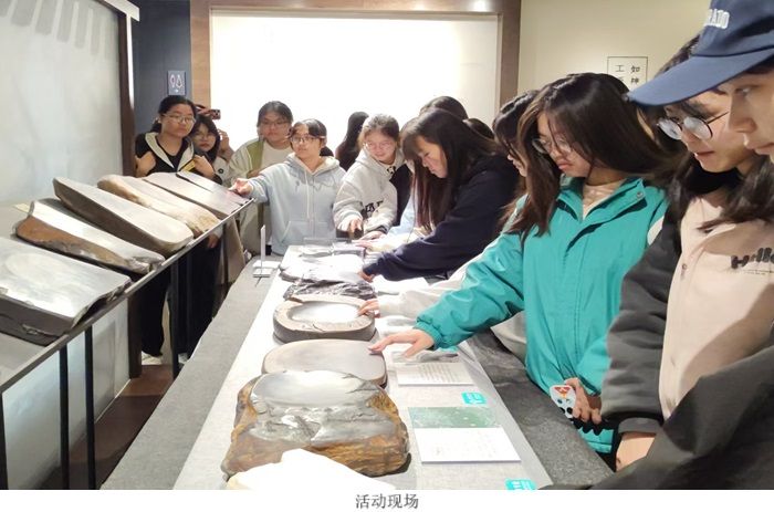 活动伊始,同学们在肇庆工艺美术行业协会受到了肇工美秘书长、党支部书记郑天旭的热情接待。郑书记详细阐述了端砚的起源及其在不同历史时期的发展与演变,并亲自展示了个人所收藏的端砚精品,供同学们近距离观察其纹理、质地等特征,同时发表了自己的见解与评论。