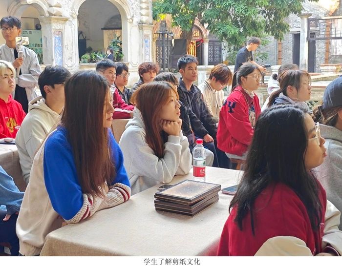 12月4日上午,陈爱霞副经理带领老师和同学们抵达陈永才剪纸艺院,老师的讲解让同学们深入了解剪纸历史、文化内涵和艺术形式,惊叹于剪纸作品的精湛技艺与寓意。
