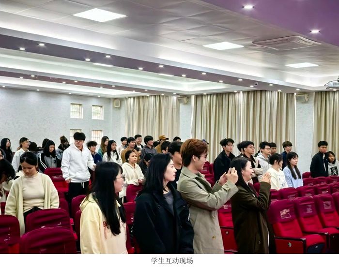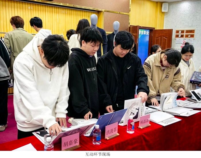 关其勇副总监发言完毕后,邀请全体同学上台去欣赏、抚摸和感受冠荣控股集团研发的Logo产品。而冠荣控股集团的各位领导也在互动环节中为同学们一一介绍产品以及一一解答各个同学对服饰市场、未来职业规划、专业知识等领域的疑惑,鼓励大家要勇于面对挑战、积极追求梦想。也分享了在职场中如何保持学习心态、如何适应工作环境、如何提升个人能力等宝贵经验。通过互动交流,同学们不仅收获了知识,更感受到了温暖和关怀。