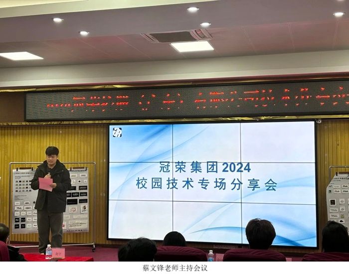 宣讲会伊始,蔡文锋老师发表了热情洋溢的欢迎致辞,首先对冠荣集团的到来表示了热烈的欢迎和衷心的感谢,随后简要介绍了本次宣讲会的出席嘉宾