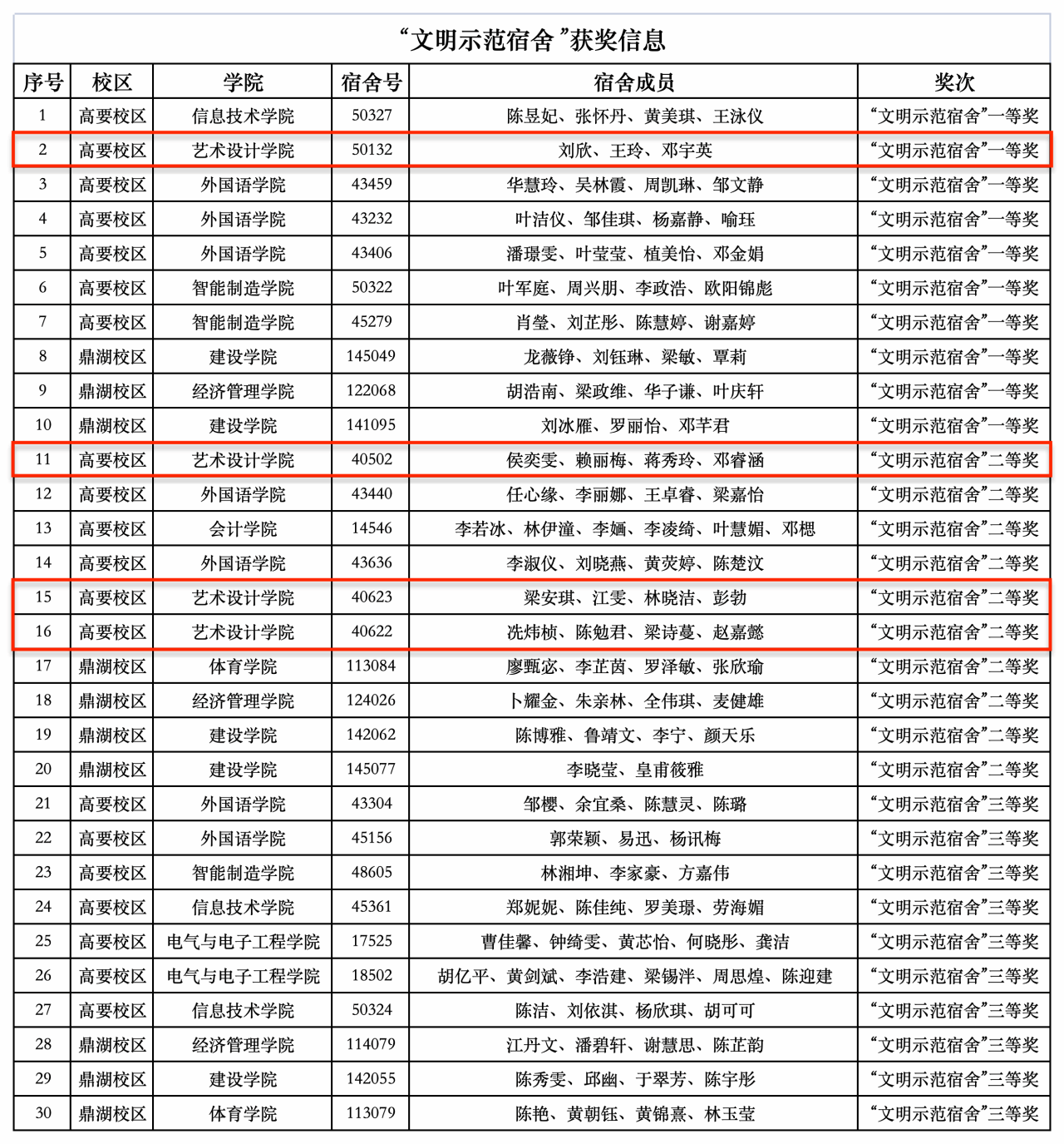 宿舍获奖: