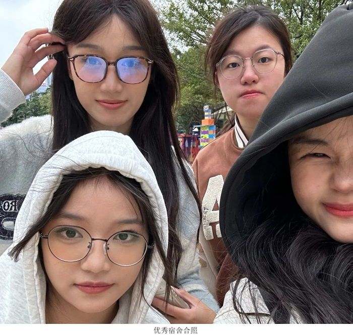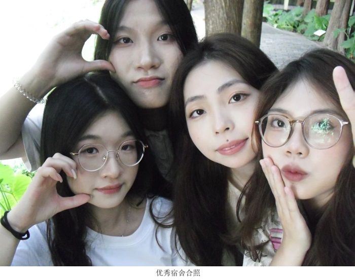 4号床冼炜桢(宿舍长),1号床陈勉君,2号床梁诗蔓,3号床赵嘉懿