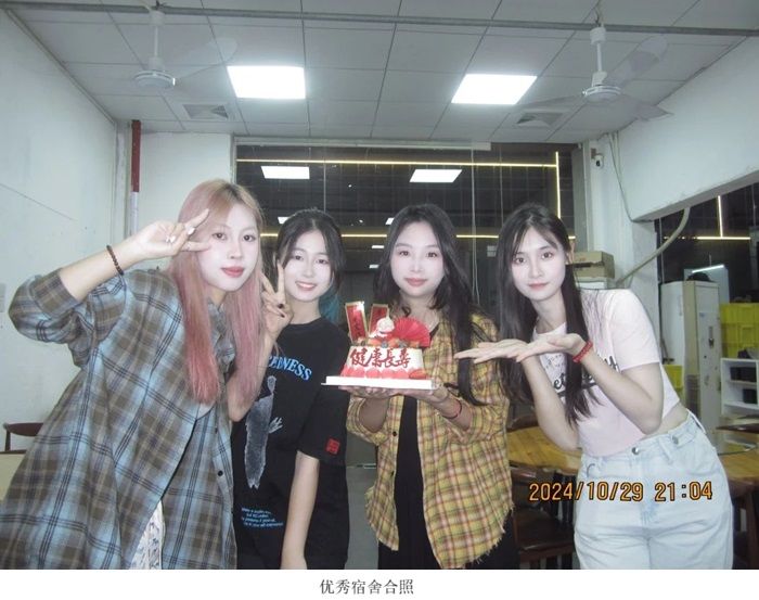 三号床蒋秀玲(舍长) 一号床侯奕雯 二号床赖丽梅 四号床邓睿涵