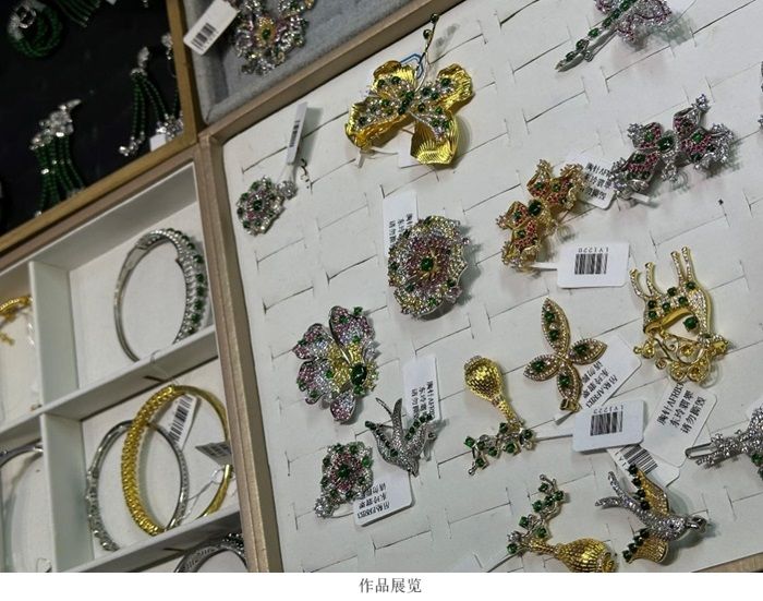 参观艺术馆,感悟翡翠魅力。活动当天,在东玲艺术馆工作人员的引导下,师生们参观了馆内陈列的多样化艺术作品。展览作品涵盖玉石佛像、吊坠、戒指、耳环、簪子等。不仅展现了浓厚的文化底蕴,还融合了现代艺术的创新手法。如翡翠与国风簪子结合,蛇形戒指等,让师生们对传统文化的保护与传承与创新艺术性制作有了更深的体会。