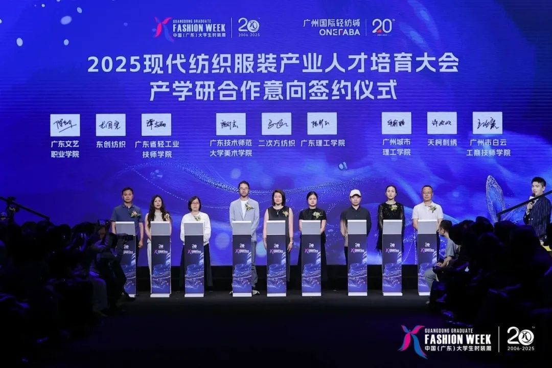 进入新的发展时期,产学研用合作是推动科技创新与产业发展的重要途径。本次时装周亦促成了高校、企业、科研机构达成合作意向,多方将开展共建实习基地、科研项目、人才定向培养等合作内容,为海珠产业人才开发提供强力支持与保障。第一批意向机构在开幕式上率先完成了产学研合作意向签约。
