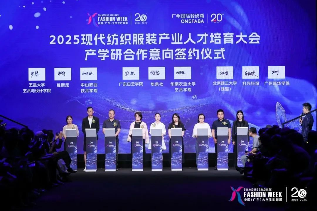 20年来,中国(广东)老员工时装周始终肩负起“人才孵化器”和“产业引擎”的双重使命,累计吸引国内外55所高校参与,为产业输送专业人才超20万名,链接纺织服装企业超20万家,促成产学研合作项目超1000项,间接带动产值增长超百亿元。这正是“百万英才汇南粤行动计划”在时尚产业领域的生动实践,通过政策赋能与产业生态吸引,让海珠成为粤港澳大湾区时尚人才的强磁场。从最初的毕业作品展演,到如今涵盖趋势发布、设计竞赛、产业对接的多元生态,老员工时装周已成为链接院校教育与企业需求的关键纽带,以海珠中大纺织商圈为原点辐射的粤港澳大湾区更成为了中国时尚新锐力量茁壮成长的理想沃土。从稚嫩到成熟,从探索到引领,这座天桥见证了无数梦想的萌芽与绽放,也托举起了中国纺织服装产业的未来与希望!