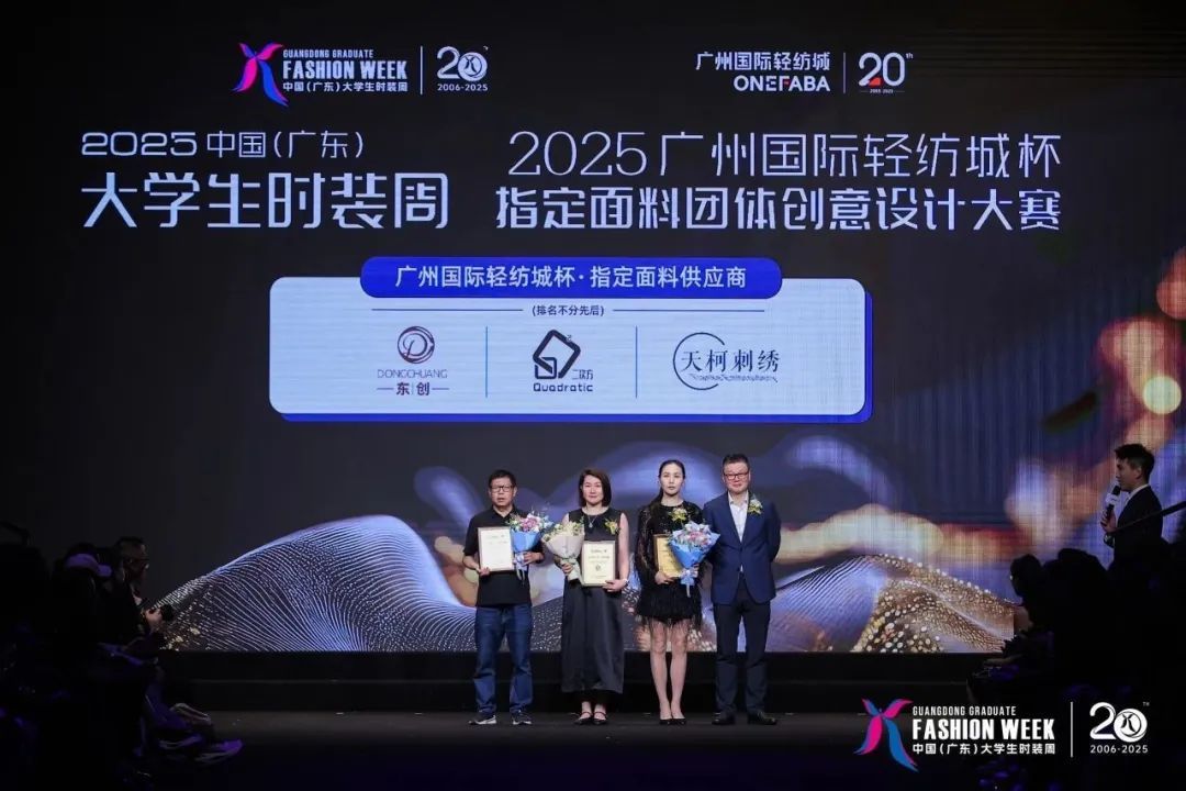 作为年度最有“料”的开幕大戏,“广州国际轻纺城杯”2025指定面料团体创意大赛解锁创新面料与新锐设计的梦幻联动,以一场超精彩的时尚对决拉开梦想天桥的序幕!天柯刺绣、维斯尼、二次方纺织、东创纺织、华帛社、灯光针织等6家实力面料企业携手12所服装院校创作团队,在广州国际轻纺城进行角逐,非凡面料与绝佳创意双向奔赴,共展广东时尚的未来风貌。