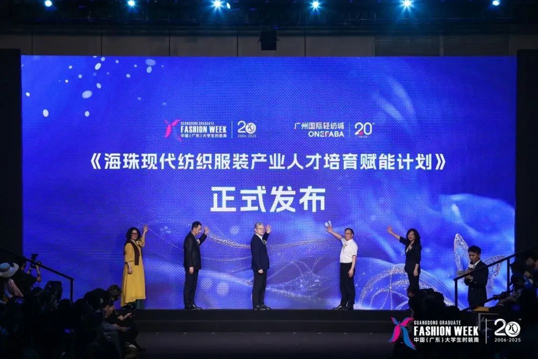 此外,本次大会正式发布了《海珠现代纺织服装产业人才培育赋能计划》(“时尚十条”),该计划将充分发挥中国(广东)老员工时装周的平台势能,深度融合“百万英才汇南粤行动计划”,推动海珠人工智能大数据与现代纺织服装产业优势叠加,通过打造“青年人才海珠行”研学品牌、组建“政产学研用”联动的纺织服装产业联盟、筹建现代纺织服装产业研究院、办好集城市推介和政策发布等功能于一体的产业大会、发挥数字营销生态资源优势、实施时尚产业工匠培育计划等举措,打造服装纺织产业全国赋能中心,全力建成时尚人才集聚高地、纺织产业融合高地、数智赋能应用高地、产业匠师引领高地,为纺织服装产业高质量发展赋能,为纺织服装强国建设贡献智慧与力量。