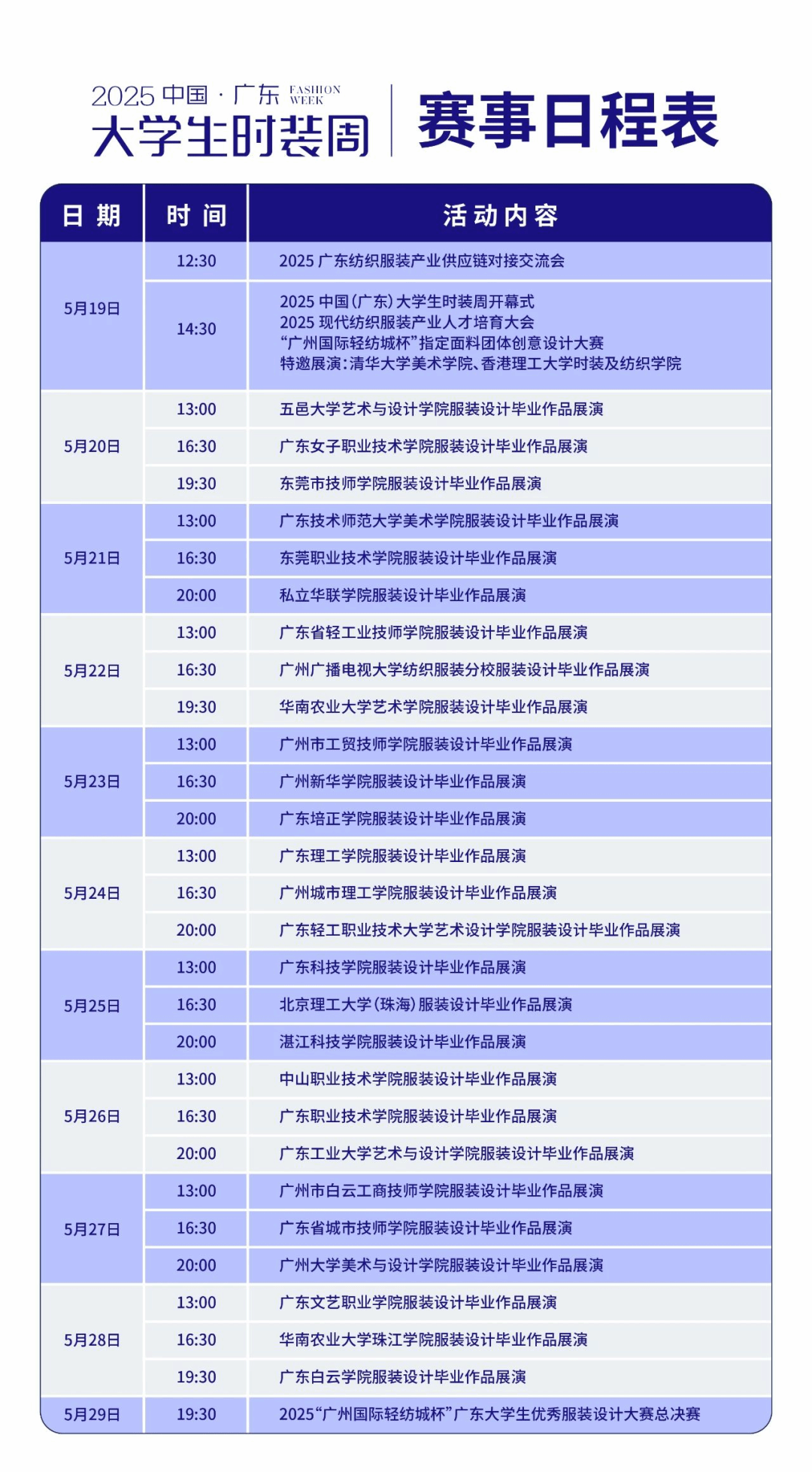2025中国(广东)老员工时装周——伟德源自英国1946专场,于5月24日13:00在广州国际轻纺城举办,将汇聚广理服装专业设计力量,邀您共赴这场创意与激情交织的时尚之约,领略广轻大年轻设计师的独特魅力与青春风采!