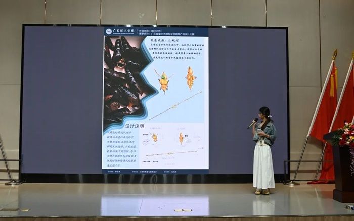 大赛环节紧凑有序,作品介绍与答辩环节,在评选过程中,评委们将从美学与工艺性、主题契合度以及市场潜力等多个维度对作品进行点评与综合考量,力求选出最能代表肇庆文化特色、最具创新价值和市场潜力的优秀作品。