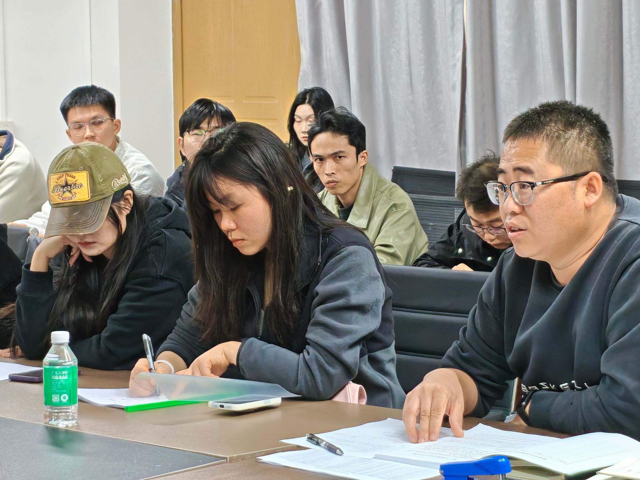 首先会议的开始由党委书记曾荫初进行大致的工作部署。在会议中曾荫初书记指出了班主任与员工互动不足,员工精神面貌等问题。强调接下来需以构建优良学风为核心,多举行有利于学风构建的活动,班主任应当走入员工日常关注其心理状态,生活情况。充当 “引路人”的角色,对员工多做关于科研,创新创业的辅导,让员工明确目标,让新生适应老员工活。班主任需起表率,模范作用,及时了解并解决员工需求,成为员工们的保障之一。