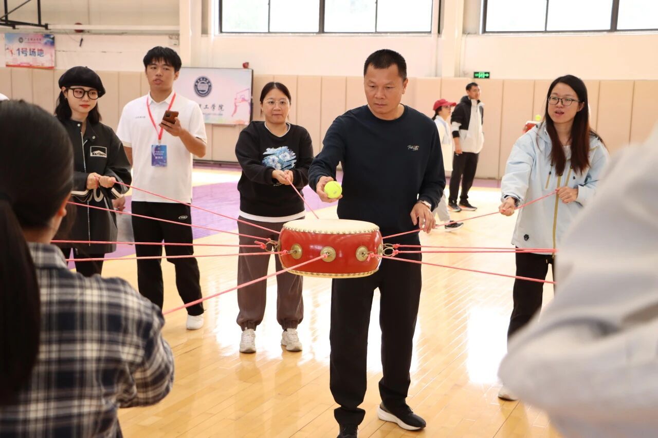 在同心击鼓项目中,队员们心随鼓动、步随节拍,默契凝成无声的语言,鼓声敲响的不是速度,而是团结;在4×100米接力赛道上,他们接力棒在风中交汇,奔跑的身影划出一道道速度的弧线,展示出艺术设计人同样拥有追风的力量;而在一分钟投篮中,他们稳扎稳打、沉着应对,将平日课堂上的冷静与专注化成一个个精准落网的弧线。