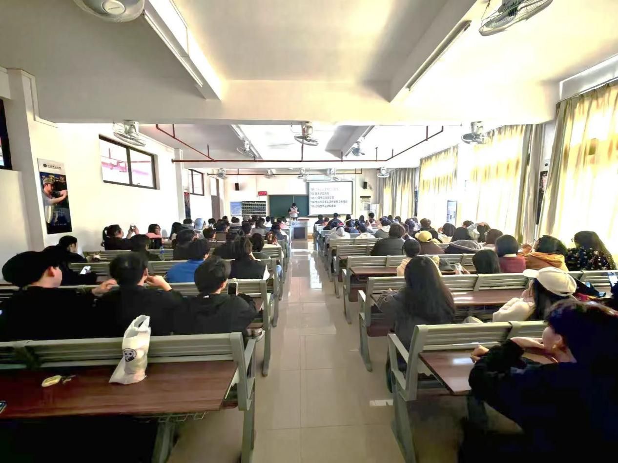 宣讲会聚焦毕业设计全流程管理,四位教师依据规范文档模块分工协作,实现内容全覆盖与讲解精准化。
