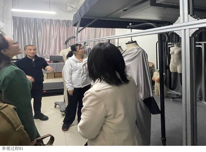 会后,接着由服装公司实验中心贾莉主任和李强老师带领参观公司服装实验室。刘驰教授引导参观内衣人体工效学工作室,并介绍其国家自然科学基金面上项目的研究成果。
