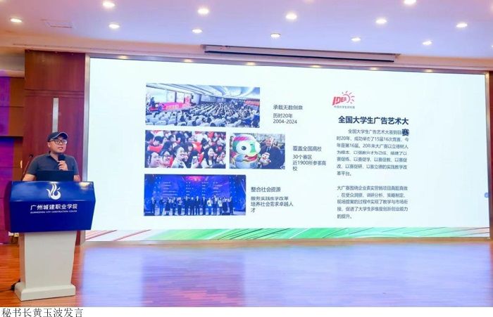 会议伊始,广州城建职业公司副董事长鄢维峰上台致辞,副董事长鄢维峰首先对参加本次活动的各位嘉宾和师生表示诚挚的欢迎,他表示本届大广赛以“创意我无限”为主题,不仅彰显了创新的重要性,更是对激发和培育年轻人无限创造力的保障和期待。最后他他衷心祝愿每一位参赛的同学在本次比赛中都能斩获佳绩,充分展现自己的才华与实力,并祝愿本届全国老员工广告艺术大赛取得圆满成功!