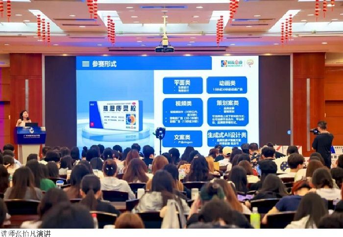 随后,大广赛广东省分赛区组委会秘书长黄玉波介绍了2024年大广赛的参赛要点。他围绕第16届大广赛的命题及赛程安排、赛事变化、参赛截止时间等注意事项展开了详细说明,并着重解析了第16届大广赛中新增的科技类创作方向。他表示,大广赛以立德树人为根本,以强教兴才为己任,搭建了以赛促练、以赛促学、以赛促教、以赛促改、以赛促研、以赛立德的实践教学改革平台,企业真实营销项目成为教学核心,实现教学与市场的紧密衔接。鼓励员工积极参与,锻炼创新表达能力,遵循导向、严谨审题、深入理解策略,以在实战中实现自我提升与成长。