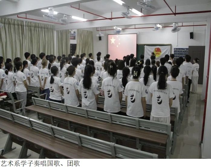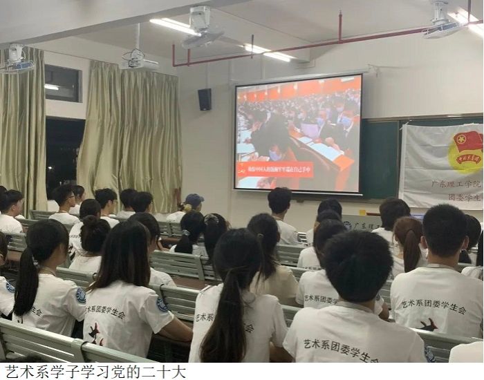 首先艺术系学子奏唱了国歌和团歌,接着学习了党的二十大精神。
