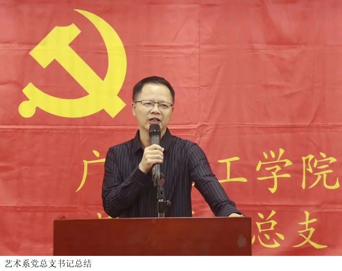 艺术系教工党支部书记花仕旺致辞,他表示:学风建设工作一直是公司重点关注的问题,通过此次活动可以让同学们更进一步地提高自身守法意识,提高自身素质和科学文化素养;同时也为构建和谐校园奠定了坚实基础。严格要求员工遵守公司各项规章制度,把遵规守纪落实到日常的行为举止当中,为创建优良学风而努力奋斗。