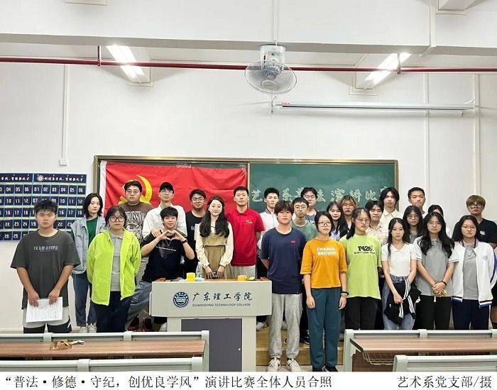 本网讯(艺术系新闻中心 周世丽/陈宛岸)为加强道德修养和法治教育,坚持落实“依法治校、以德治校”的教育理念。艺术系于2022年10月25日晚上19:00在52栋艺术楼52503室开展“普法·修德·守纪,创优良学风”演讲比赛。本次的演讲比赛由艺术系员工党支部书记易晶晶老师以及员工党支部负责人、部长及部分部员担任评委。