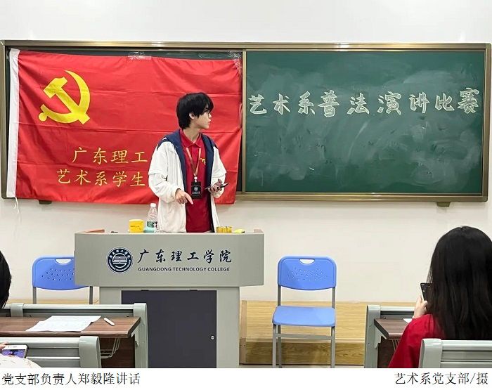 由员工党支部负责人郑毅隆为参与演讲比赛的参赛人员介绍本次初赛的规则以及各选手的演讲顺序,演讲比赛顺利进行,参赛者衣着整齐,举止得体,围绕学法守法、培养正确恋爱观等主题展开演讲,多层次多角度地阐释了“普法·修德·守纪,创优良学风”的深刻内涵,将演讲比赛推向了一个新的高潮。