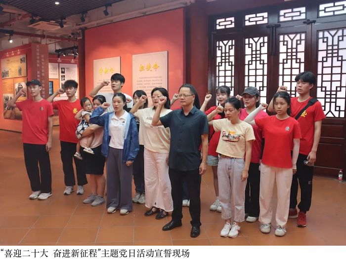 为重温入党初心,教育党员牢记誓言、恪守承诺,赵宁书记还带领老师和同学们重温了入党誓词,面对鲜艳的红旗,全体老师和同学们举起右拳,庄重宣誓,铿锵誓言回荡在宣誓厅,使每一位党员新潮澎湃,精神振奋。活动结束后,老师和同学们纷纷表示要时刻牢记党的初心和使命,赓续红色基因,继承和发扬党的优良传统和作风。