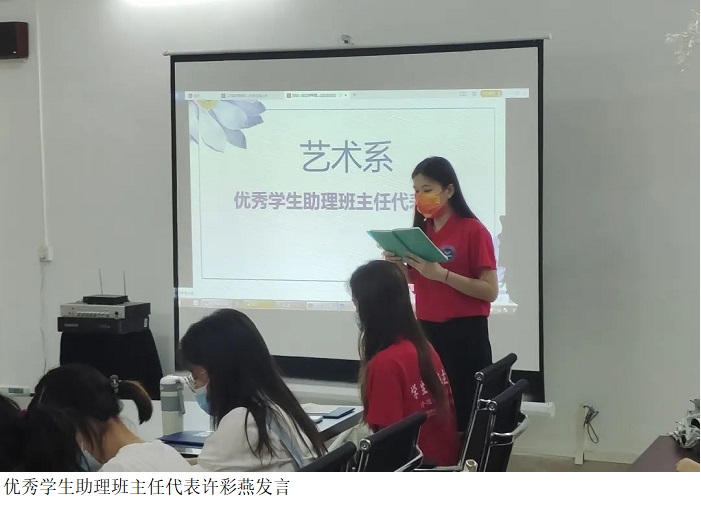优秀员工助理班主任代表许彩燕在发言中指出,作为一位助班,需要毅力和耐力,吃苦的精神,承担责任的态度和团队意识,同时要掌握方式方法,提高工作效率,在工作中提升服务质量。帮助新生尽快适应老员工活、在交流、引导与陪伴新生们的同时,与他们共同成长和进步。