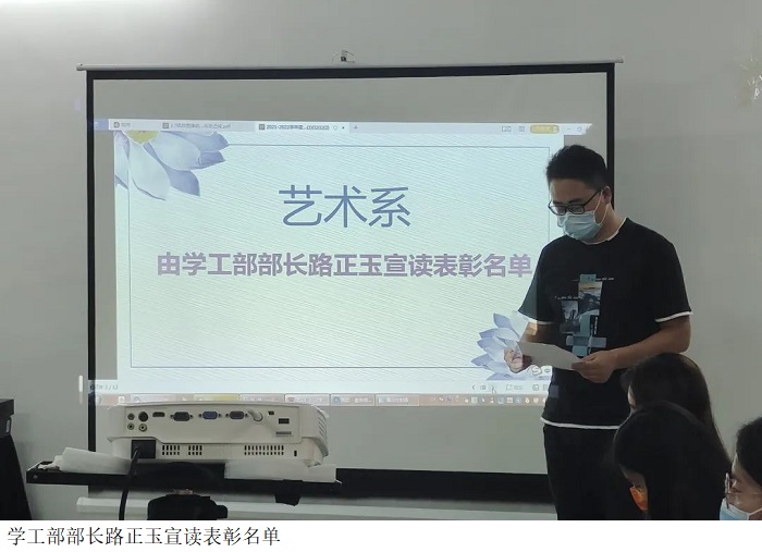 本网讯(艺术系新闻中心 王小洁/邹宜含)为了全面贯彻党的教育方针,落实立德树人的根本任务,培养优良的校风学风,展现当代青年员工积极进取、奋发向上的精神风貌。艺术系于2022年5月17日15:00在艺术楼二楼会议室举行2021—2022学年度“优秀员工助理班主任”、“优秀班集体”、“优秀班干部”表彰大会。