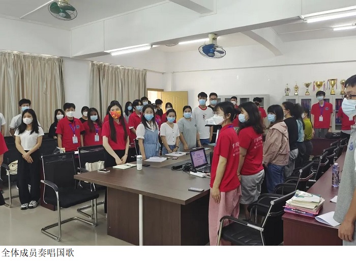 会议伊始,全体成员奏唱国歌。学工部部长路正玉宣读表彰名单。