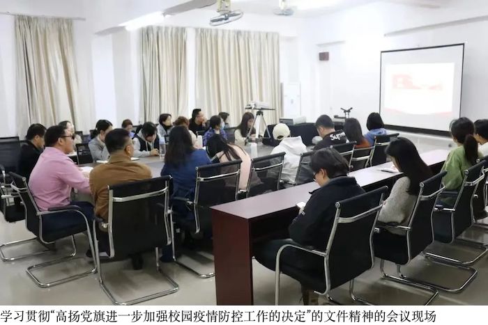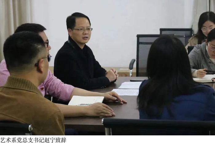 最后,赵宁书记强调,艺术系全体师生要始终站在疫情防控的最前列:一个支部就是一座堡垒,一名党员就是一面旗帜,坚定必胜信念,同舟共济,万众一心,众志成城,携手共筑疫情防控安全屏障,为打赢疫情阻击战贡献自己的力量,夺取抗击疫情阻击战的最终胜利!