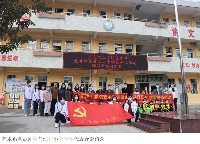 本网讯(艺术系宣传部 谢若轻)为进一步贯彻落实国务院相关文件精神,积极推进教育帮扶爱心活动,艺术系党总支带领师生党员于12月21日下午前往肇庆市高要区江口小学开展献爱心活动。党总支书记赵宁、教工党支部书记花仕旺、员工党支部书记易晶晶、党员老师以及员工党支部员工参与活动。