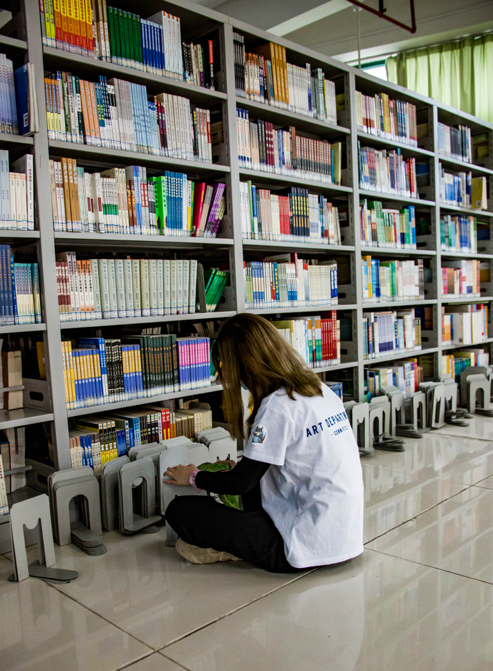 艺术分团委志愿者擦拭图书馆书架