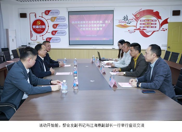 活动开始前座谈环节,黎会友对市委组织部、市人社局领导莅临公司举办“百万英才汇南粤 ”就业指导推介活动表示热烈欢迎,表示希望强化校地合作,推动更多毕业生留肇发展。江海燕对公司承办本次活动的大力支持表示感谢,并介绍了活动筹备相关情况。