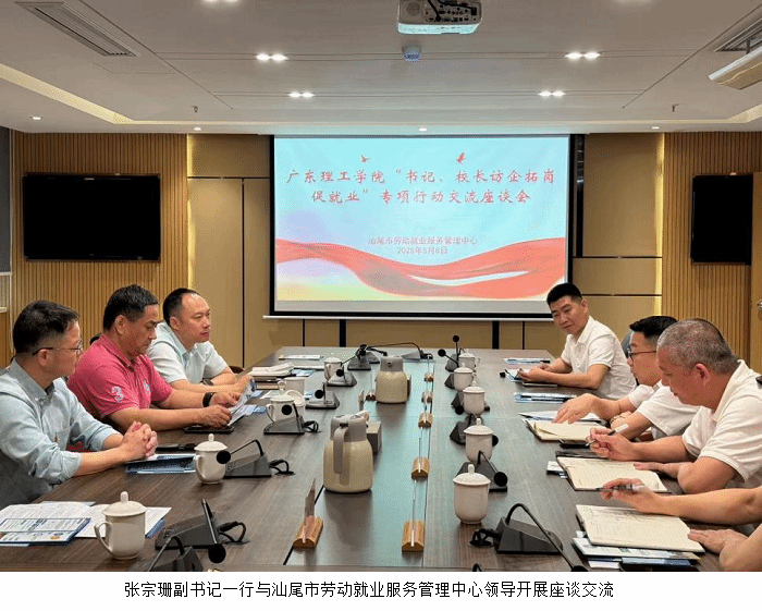 5月8日上午,张宗珊副书记一行抵达汕尾市劳动就业服务管理中心,双方围绕高校人才培养制度、毕业生就业政策、地方产业发展需求以及人才供给等话题展开深入探讨、双方表示将通过建立紧密的政校合作关系,致力于为汕尾地方经济发展输送更多高素质专业人才,同时也为员工提供优质的实习岗位、就业岗位选择。